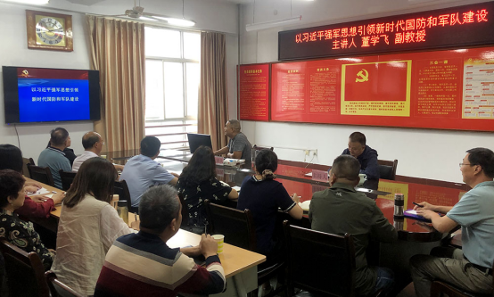 9月21日董学飞副教授首先开讲。为法政公司教师做《以习近平强军思想引领新时代国防和军队建设》的报告。董学飞老师以深入浅出的语言,讲解了通过政治建军、改革强军、科技兴军、依法治军,把人民军队建设成为世界一流军队的强军目标。特别强调将听党指挥置于强军目标的首位,坚决反对“军队国家化、非政治化、非政党化”的错误观点。