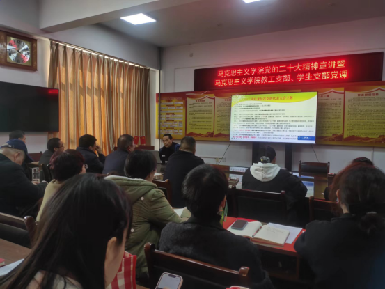 为推动党的二十大精神“三进”工作,2023年2月27日,公司开展了党的二十大精神宣讲暨yl6809永利教工支部、员工支部党课和党的二十大精神有效融入思政课交流活动。市委宣讲团成员、公司副教授丁法营作专题报告。公司党总支书记张育琳主持,马院全体党员和思政课教师参加。