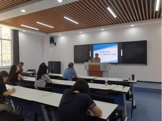 2023年8月28日下午,yl6809永利在红色思政教室召开2023~2024年第一学期教学工作会议,公司领导班子及全体思政课教师参加。
